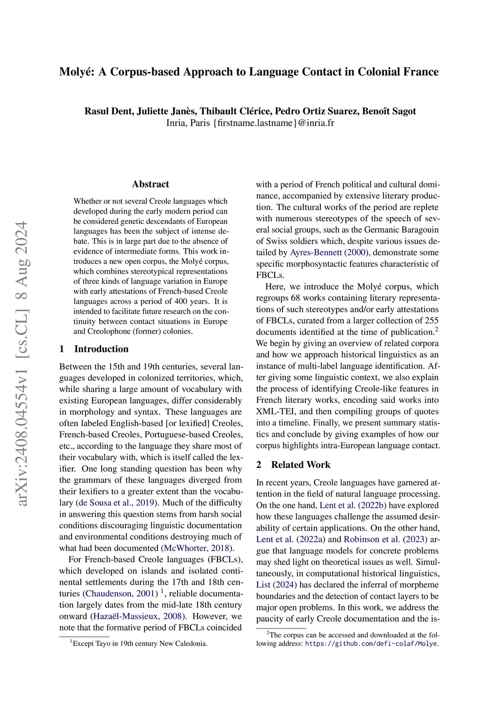 Molyé: A Corpus-based Approach to Language Contact in Colonial France