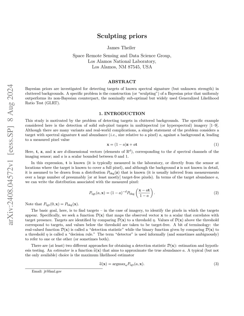 Bayesian priors are investigated for detecting targets of known spectral signature (but unknown strength) in cluttered backgrounds. A specific problem is the construction (or ``sculpting'') of a Bayesian prior that uniformly outperforms its non-Bayesian counterpart, the nominally sub-optimal but widely used Generalized Likelihood Ratio Test (GLRT).