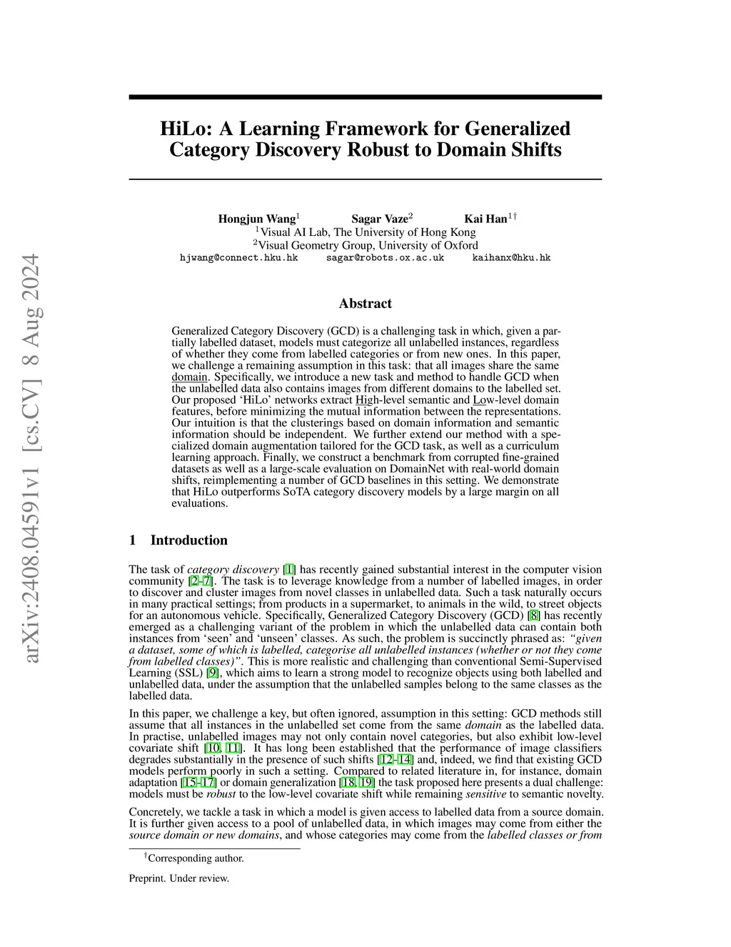 HiLo: A Learning Framework for Generalized Category Discovery Robust to Domain Shifts