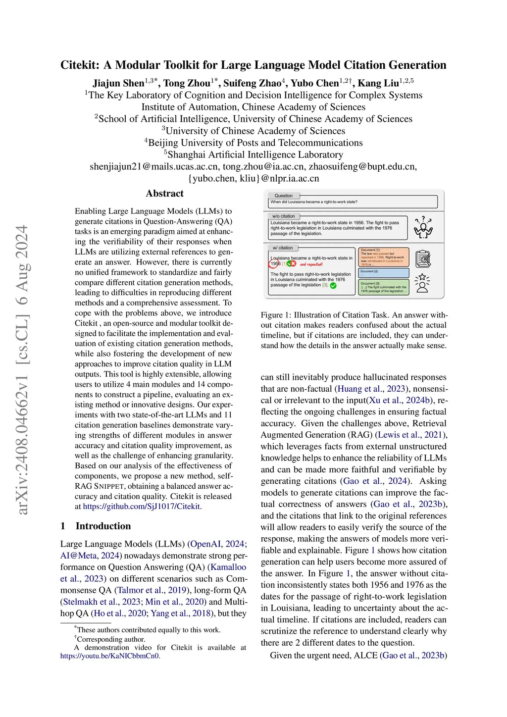 Citekit: A Modular Toolkit for Large Language Model Citation Generation