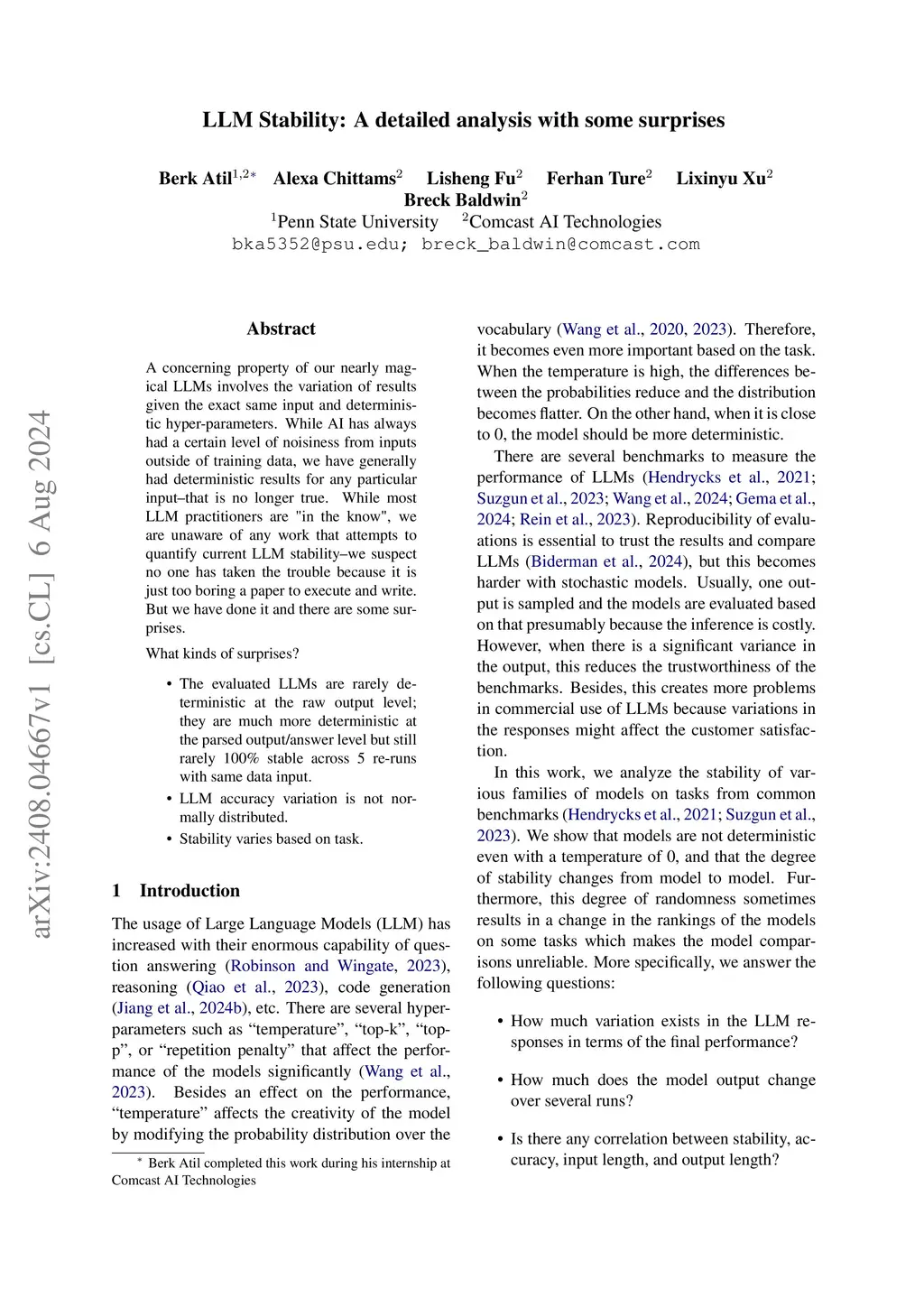 LLM (large language model) practitioners commonly notice that outputs can vary for the same inputs under settings expected to be deterministic. Yet the questions of how pervasive this is, and with what impact on results, have not to our knowledge been systematically investigated. We investigate non-determinism in five LLMs configured to be deterministic when applied to eight common tasks in across 10 runs, in both zero-shot and few-shot settings. We see accuracy variations up to 15% across naturally occurring runs with a gap of best possible performance to worst possible performance up to 70%. In fact, none of the LLMs consistently delivers repeatable accuracy across all tasks, much less identical output strings. Sharing preliminary results with insiders has revealed that non-determinism perhaps essential to the efficient use of compute resources via co-mingled data in input buffers so this issue is not going away anytime soon. To better quantify our observations, we introduce metrics focused on quantifying determinism, TARr@N for the total agreement rate at N runs over raw output, and TARa@N for total agreement rate of parsed-out answers. Our code and data are publicly available atthis https URL.