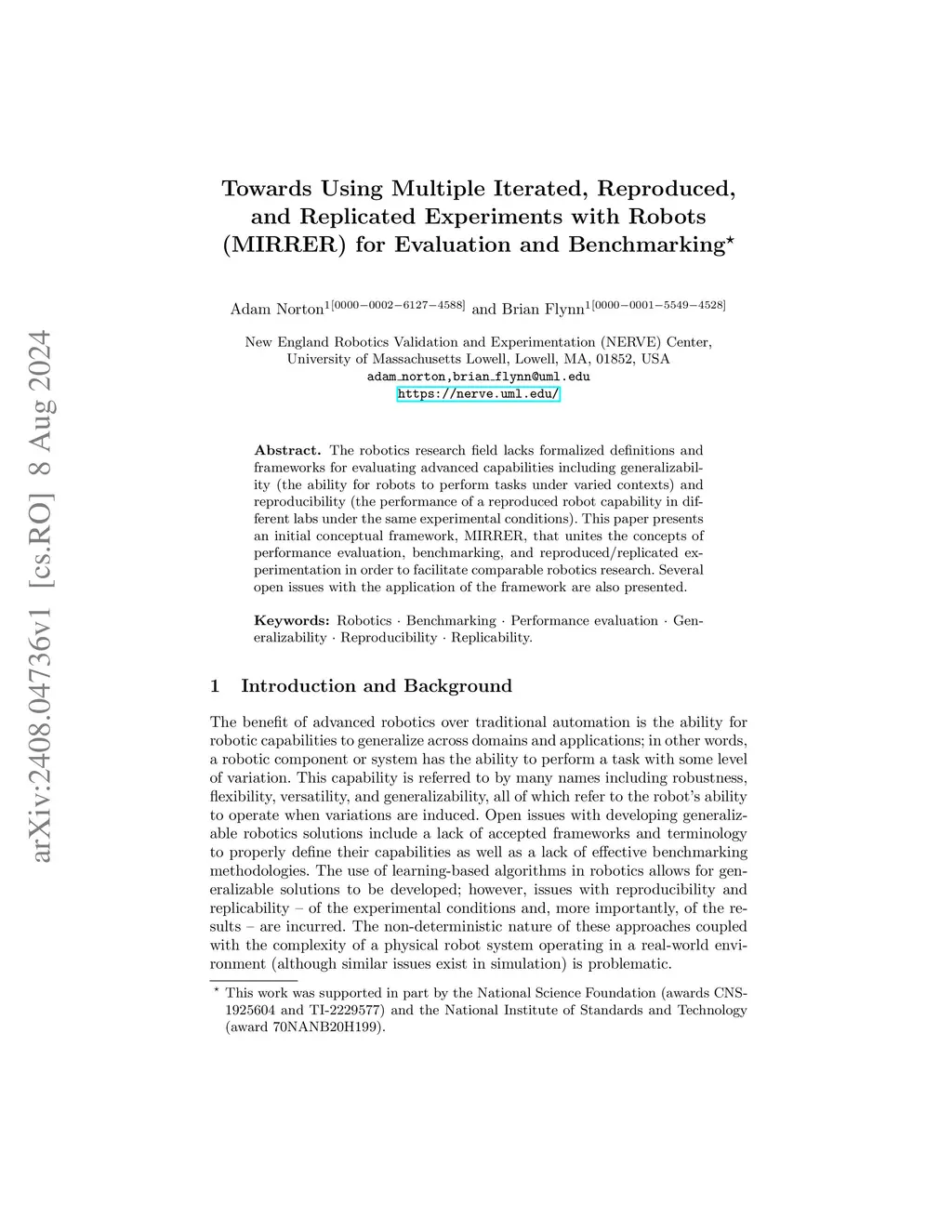 with Robots (MIRRER) for Evaluation and Benchmarking