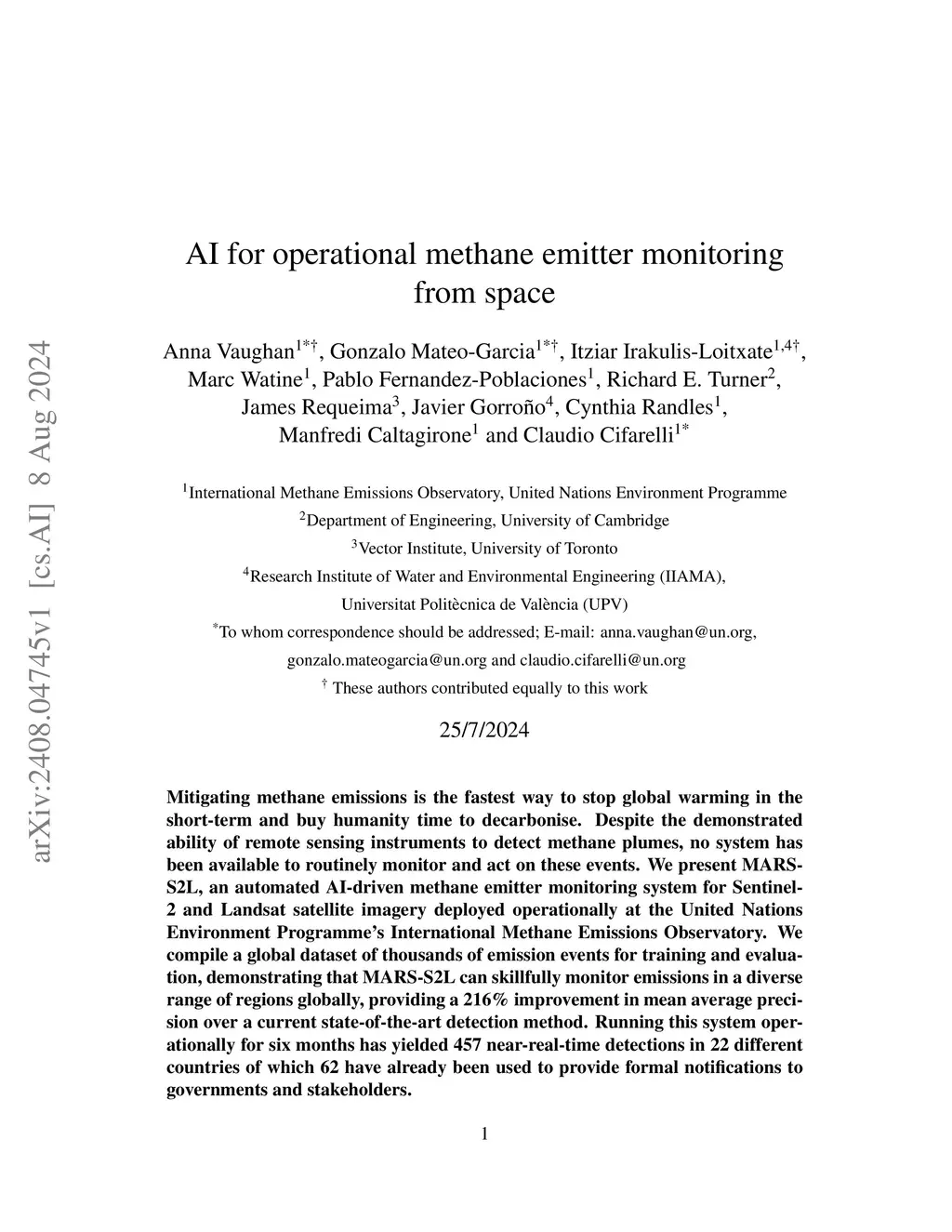 AI for operational methane emitter monitoring from space