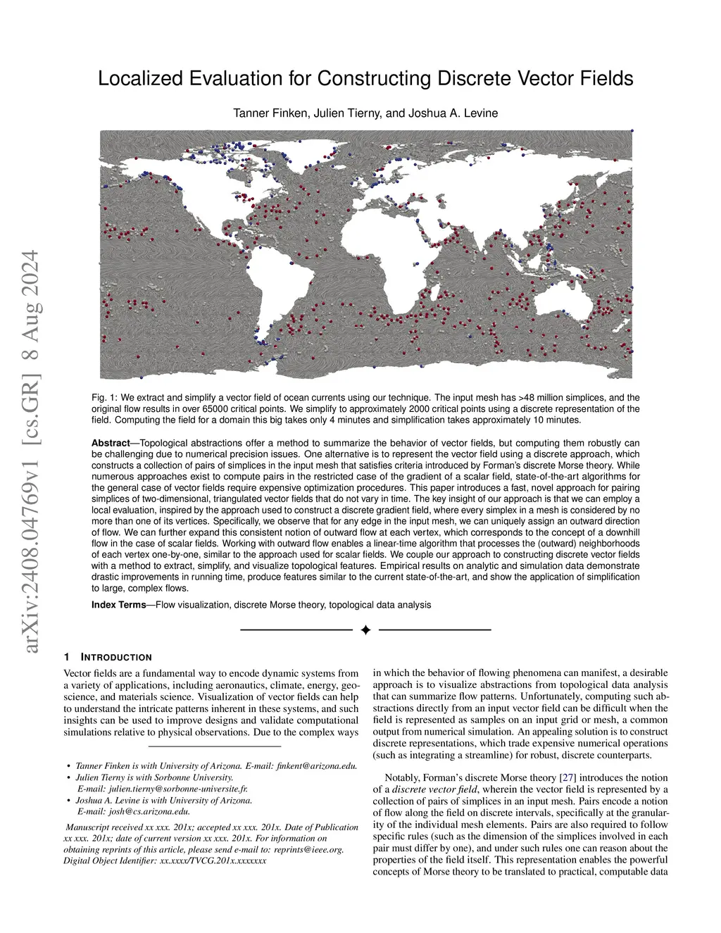 Topological abstractions offer a method to summarize the behavior of vector fields but computing them robustly can be challenging due to numerical precision issues. One alternative is to represent the vector field using a discrete approach, which constructs a collection of pairs of simplices in the input mesh that satisfies criteria introduced by Forman's discrete Morse theory. While numerous approaches exist to compute pairs in the restricted case of the gradient of a scalar field, state-of-the-art algorithms for the general case of vector fields require expensive optimization procedures. This paper introduces a fast, novel approach for pairing simplices of two-dimensional, triangulated vector fields that do not vary in time. The key insight of our approach is that we can employ a local evaluation, inspired by the approach used to construct a discrete gradient field, where every simplex in a mesh is considered by no more than one of its vertices. Specifically, we observe that for any edge in the input mesh, we can uniquely assign an outward direction of flow. We can further expand this consistent notion of outward flow at each vertex, which corresponds to the concept of a downhill flow in the case of scalar fields. Working with outward flow enables a linear-time algorithm that processes the (outward) neighborhoods of each vertex one-by-one, similar to the approach used for scalar fields. We couple our approach to constructing discrete vector fields with a method to extract, simplify, and visualize topological features. Empirical results on analytic and simulation data demonstrate drastic improvements in running time, produce features similar to the current state-of-the-art, and show the application of simplification to large, complex flows.