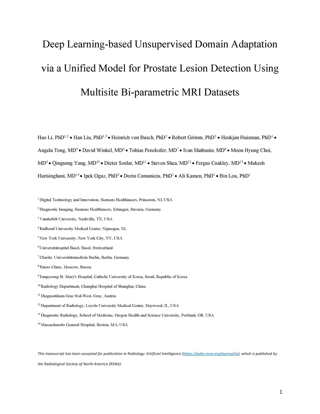 for Prostate Lesion Detection Using Multisite Bi-parametric MRI Datasets