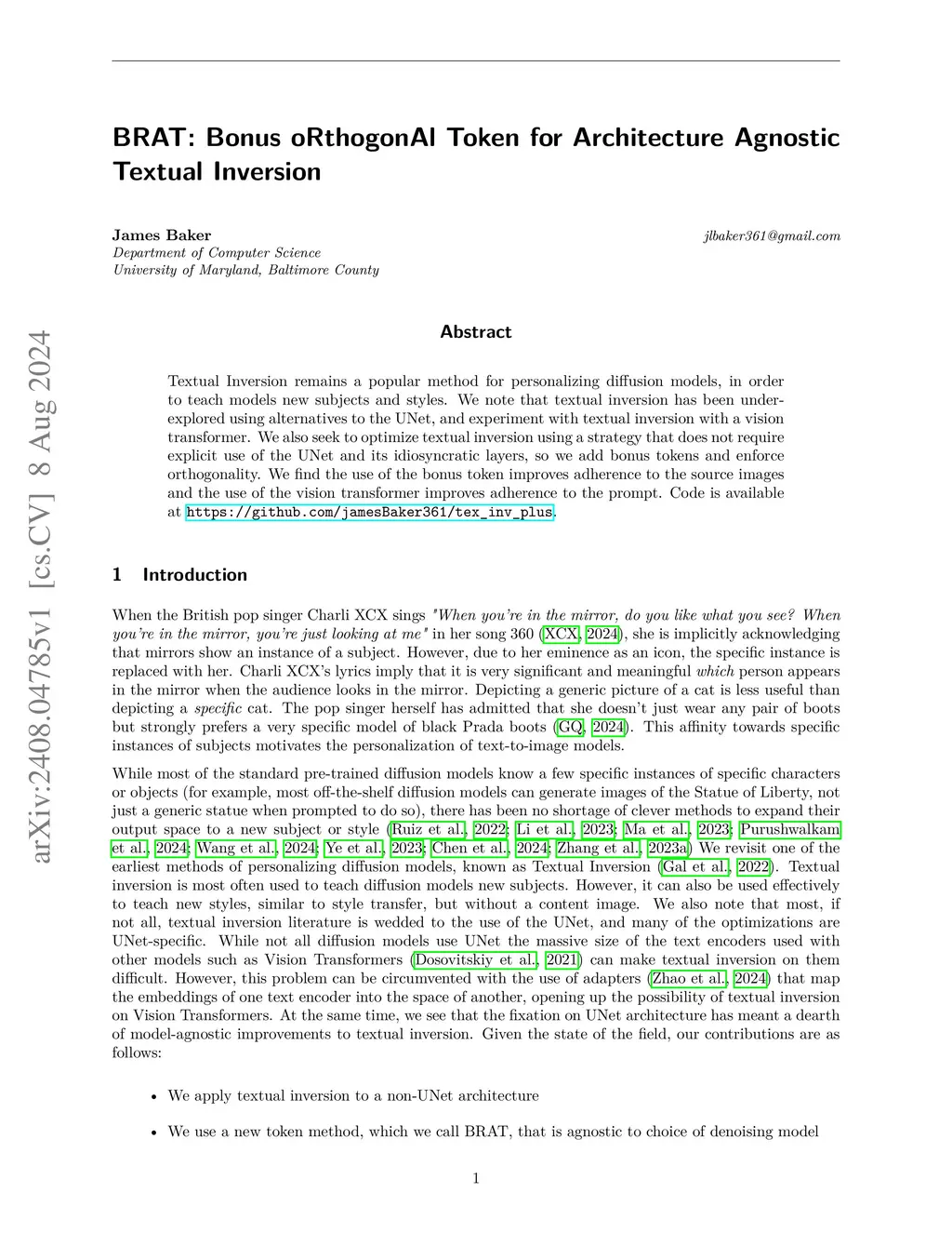 BRAT: Bonus oRthogonAl Token for Architecture Agnostic Textual Inversion