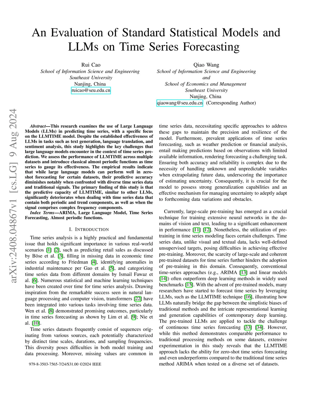 An Evaluation of Standard Statistical Models and LLMs on Time Series