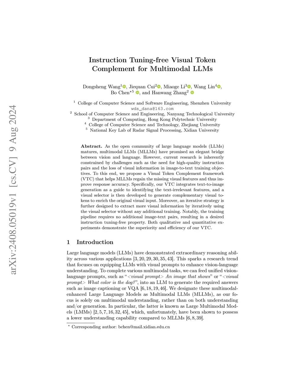 Instruction Tuning-free Visual Token Complement for Multimodal LLMs