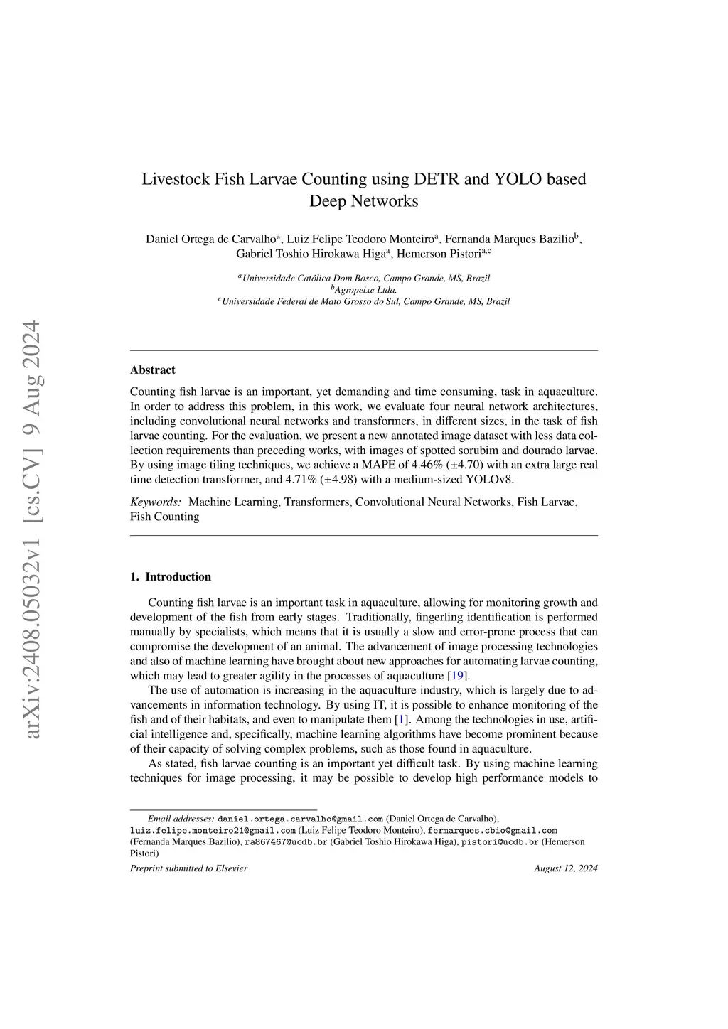 Livestock Fish Larvae Counting using DETR and YOLO based Deep Networks