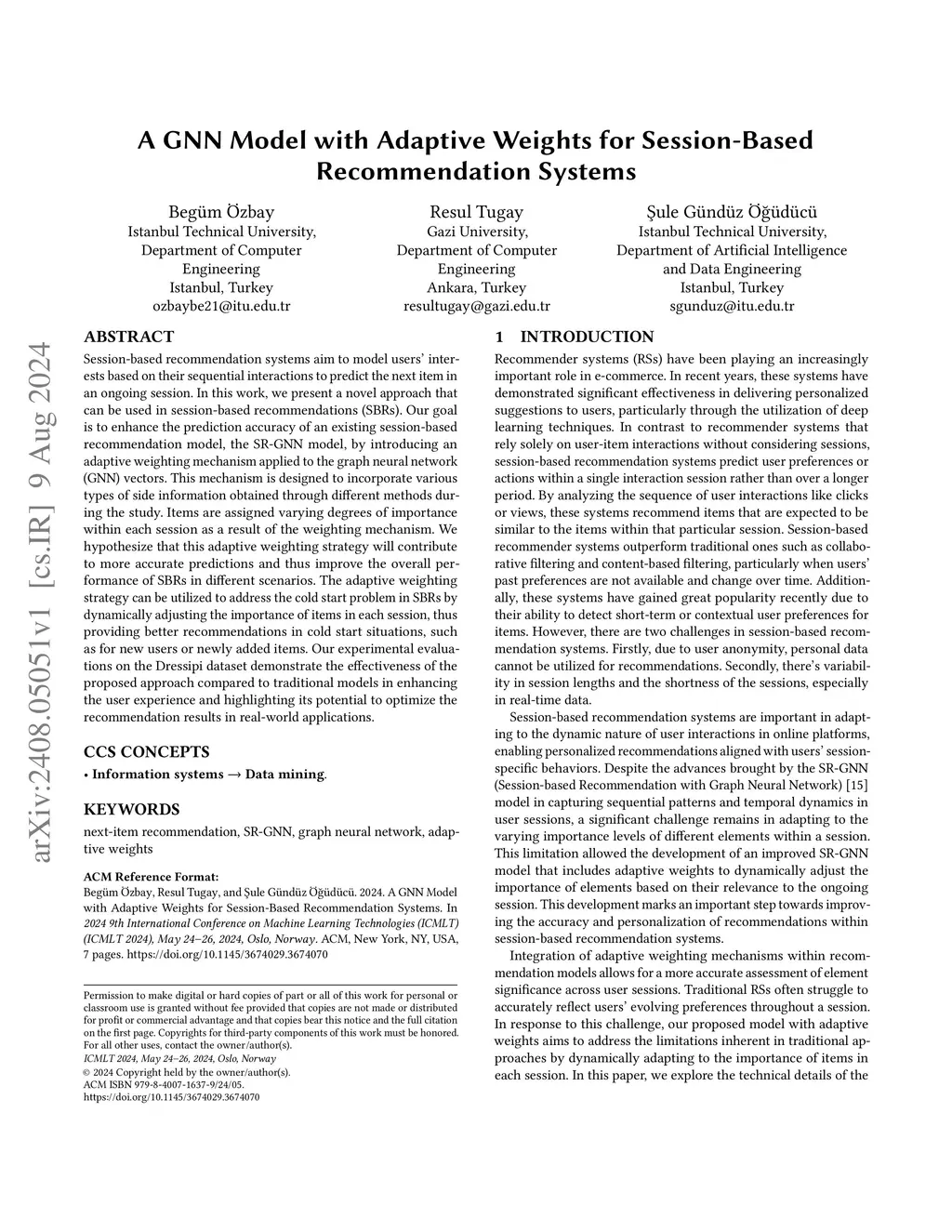 A GNN Model with Adaptive Weights for Session-Based Recommendation