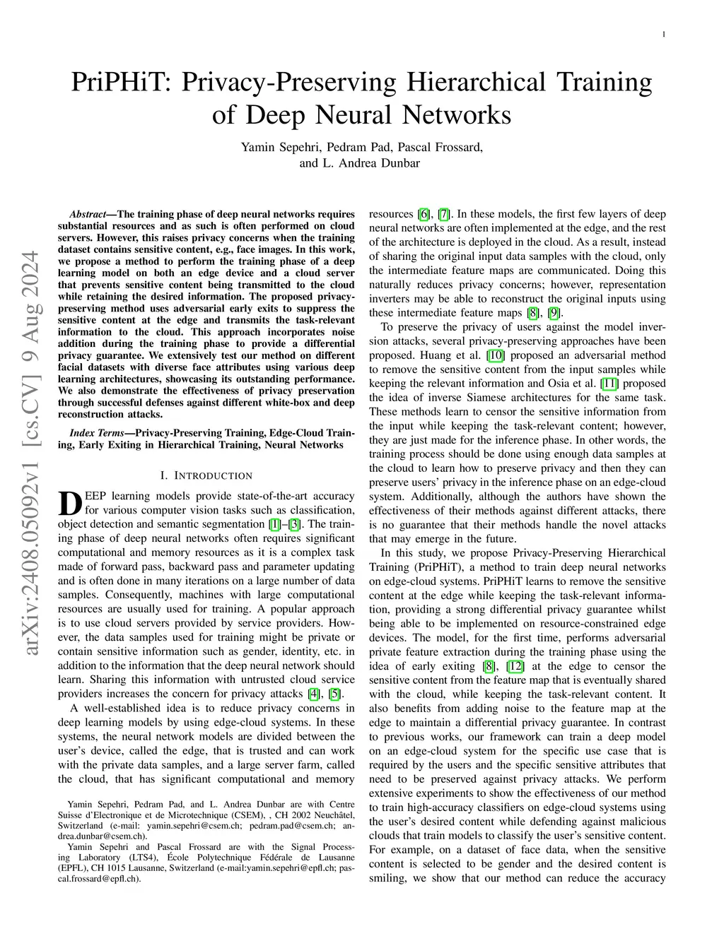 PriPHiT: Privacy-Preserving Hierarchical Training of Deep Neural