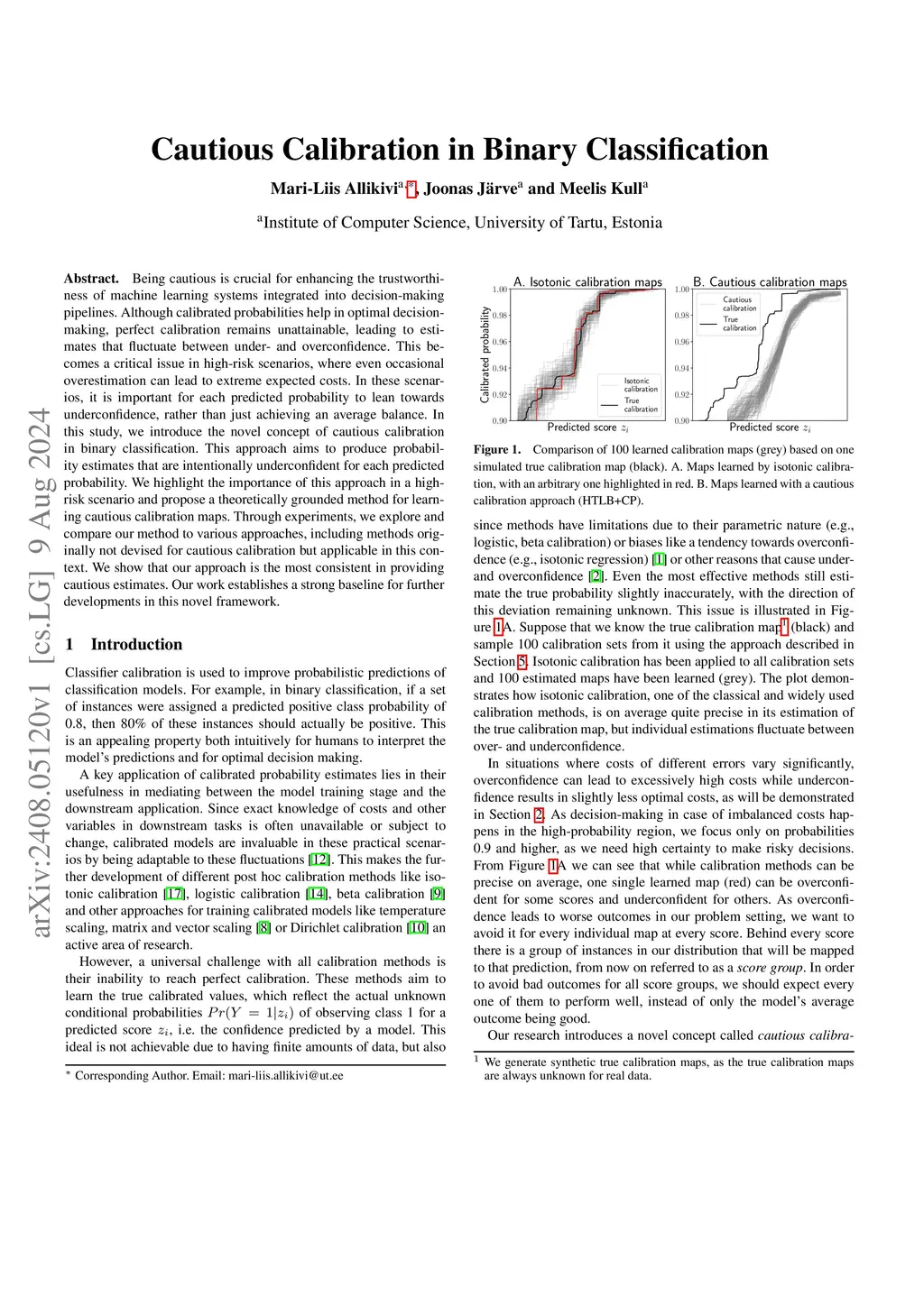 Being cautious is crucial for enhancing the trustworthiness of machine learning systems integrated into decision-making pipelines. Although calibrated probabilities help in optimal decision-making, perfect calibration remains unattainable, leading to estimates that fluctuate between under- and overconfidence. This becomes a critical issue in high-risk scenarios, where even occasional overestimation can lead to extreme expected costs. In these scenarios, it is important for each predicted probability to lean towards underconfidence, rather than just achieving an average balance. In this study, we introduce the novel concept of cautious calibration in binary classification. This approach aims to produce probability estimates that are intentionally underconfident for each predicted probability. We highlight the importance of this approach in a high-risk scenario and propose a theoretically grounded method for learning cautious calibration maps. Through experiments, we explore and compare our method to various approaches, including methods originally not devised for cautious calibration but applicable in this context. We show that our approach is the most consistent in providing cautious estimates. Our work establishes a strong baseline for further developments in this novel framework.