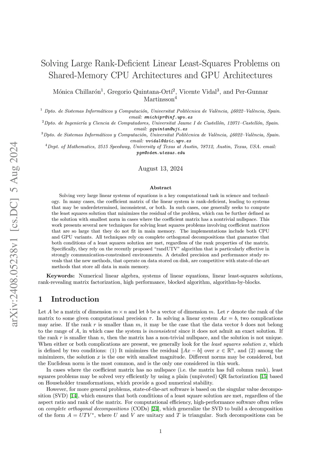 Solving Large Rank-Deficient Linear Least-Squares Problems on