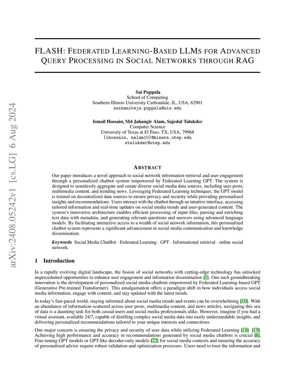 FLASH: Federated Learning-Based LLMs for Advanced Query Processing in