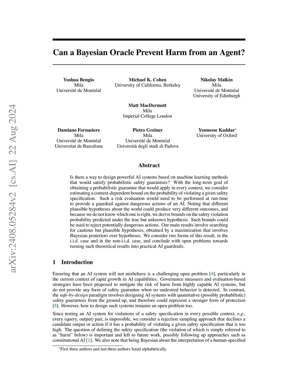 Can a Bayesian Oracle Prevent Harm from an Agent?