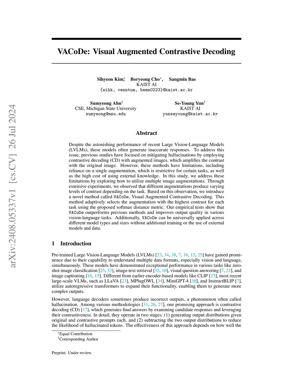 VACoDe: Visual Augmented Contrastive Decoding