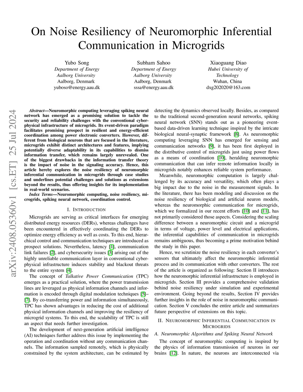 Neuromorphic computing leveraging spiking neural network has emerged as a promising solution to tackle the security and reliability challenges with the conventional cyber-physical infrastructure of microgrids. Its event-driven paradigm facilitates promising prospect in resilient and energy-efficient coordination among power electronic converters. However, different from biological neurons that are focused in the literature, microgrids exhibit distinct architectures and features, implying potentially diverse adaptability in its capabilities to dismiss information transfer, which remains largely unrevealed. One of the biggest drawbacks in the information transfer theory is the impact of noise in the signaling accuracy. Hence, this article hereby explores the noise resiliency of neuromorphic inferential communication in microgrids through case studies and underlines potential challenges and solutions as extensions beyond the results, thus offering insights for its implementation in real-world scenarios.