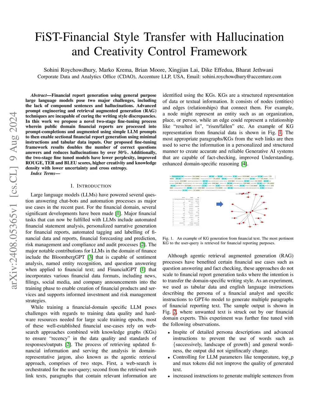 Financial report generation using general purpose large language models (LLMs) pose two major challenges namely, the lack of compound sentences and hallucinations. Advanced prompt engineering and retrieval augmented generation (RAG) techniques are limited in scope for curing these writing style discrepancies. In this work we propose a novel two-stage fine-tuning (FT) process wherein public domain financial reports are processed into prompt-completions and augmented using simple LLM prompts to then enable sectional financial report generation using minimal instructions and tabular data inputs. The proposed fine-tuning process exploits the self-learning capability of LLMs by allowing hallucinations in the first stage and showing the corrections in the second stage. Our proposed fine-tuning framework results doubles the number of correct questions answers and reduces hallucinations by over 50%. Additionally, the two-stage FT model has lower perplexity, improved ROUGE, TER and BLEU scores, higher creativity and knowledge density with lower uncertainty and cross entropy. Thus, the proposed framework can be generalized to domain specific fine-tuning tasks at minimized tuning costs.