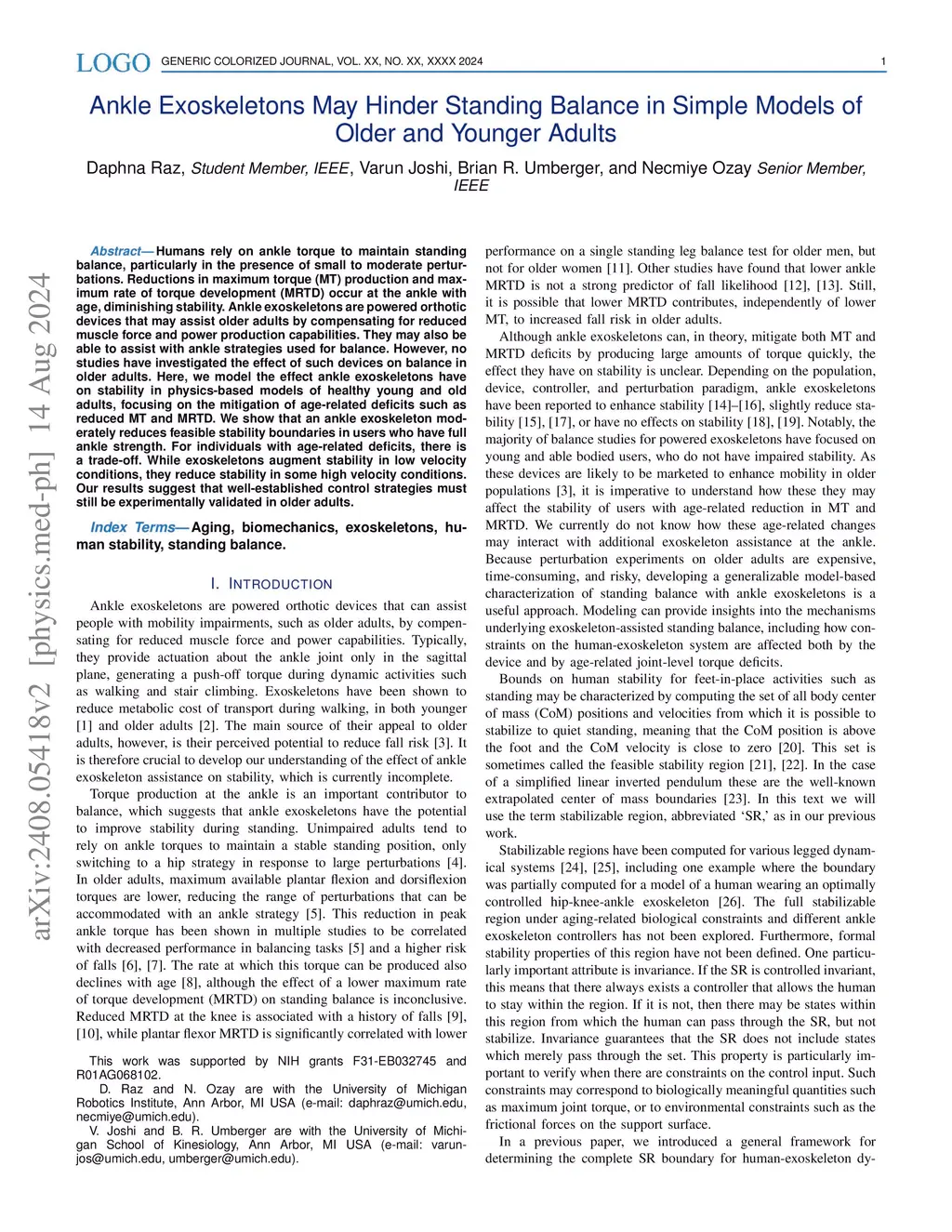 Ankle Exoskeletons May Hinder Standing Balance in Simple Models of Older