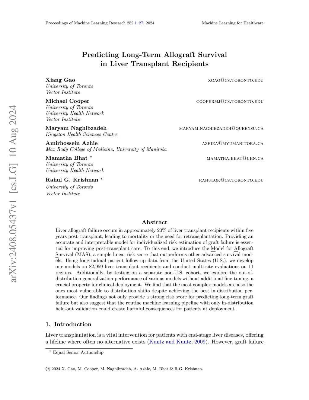 Predicting Long-Term Allograft Survival in Liver Transplant Recipients