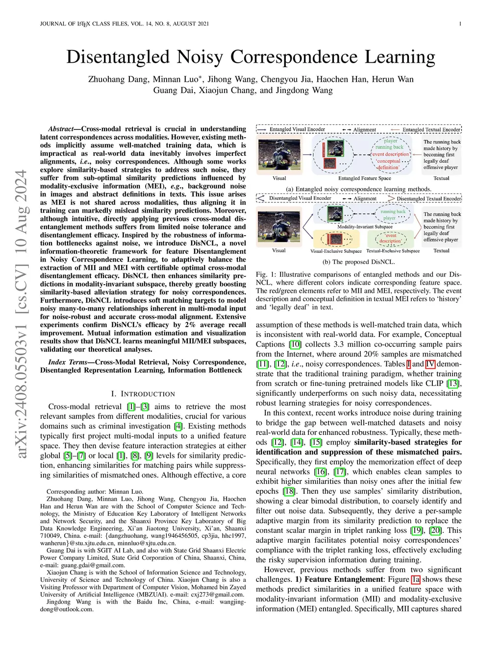 Cross-modal retrieval is crucial in understanding latent correspondences across modalities. However, existing methods implicitly assume well-matched training data, which is impractical as real-world data inevitably involves imperfect alignments, i.e., noisy correspondences. Although some works explore similarity-based strategies to address such noise, they suffer from sub-optimal similarity predictions influenced by modality-exclusive information (MEI), e.g., background noise in images and abstract definitions in texts. This issue arises as MEI is not shared across modalities, thus aligning it in training can markedly mislead similarity predictions. Moreover, although intuitive, directly applying previous cross-modal disentanglement methods suffers from limited noise tolerance and disentanglement efficacy. Inspired by the robustness of information bottlenecks against noise, we introduce DisNCL, a novel information-theoretic framework for feature Disentanglement in Noisy Correspondence Learning, to adaptively balance the extraction of MII and MEI with certifiable optimal cross-modal disentanglement efficacy. DisNCL then enhances similarity predictions in modality-invariant subspace, thereby greatly boosting similarity-based alleviation strategy for noisy correspondences. Furthermore, DisNCL introduces soft matching targets to model noisy many-to-many relationships inherent in multi-modal input for noise-robust and accurate cross-modal alignment. Extensive experiments confirm DisNCL's efficacy by 2% average recall improvement. Mutual information estimation and visualization results show that DisNCL learns meaningful MII/MEI subspaces, validating our theoretical analyses.