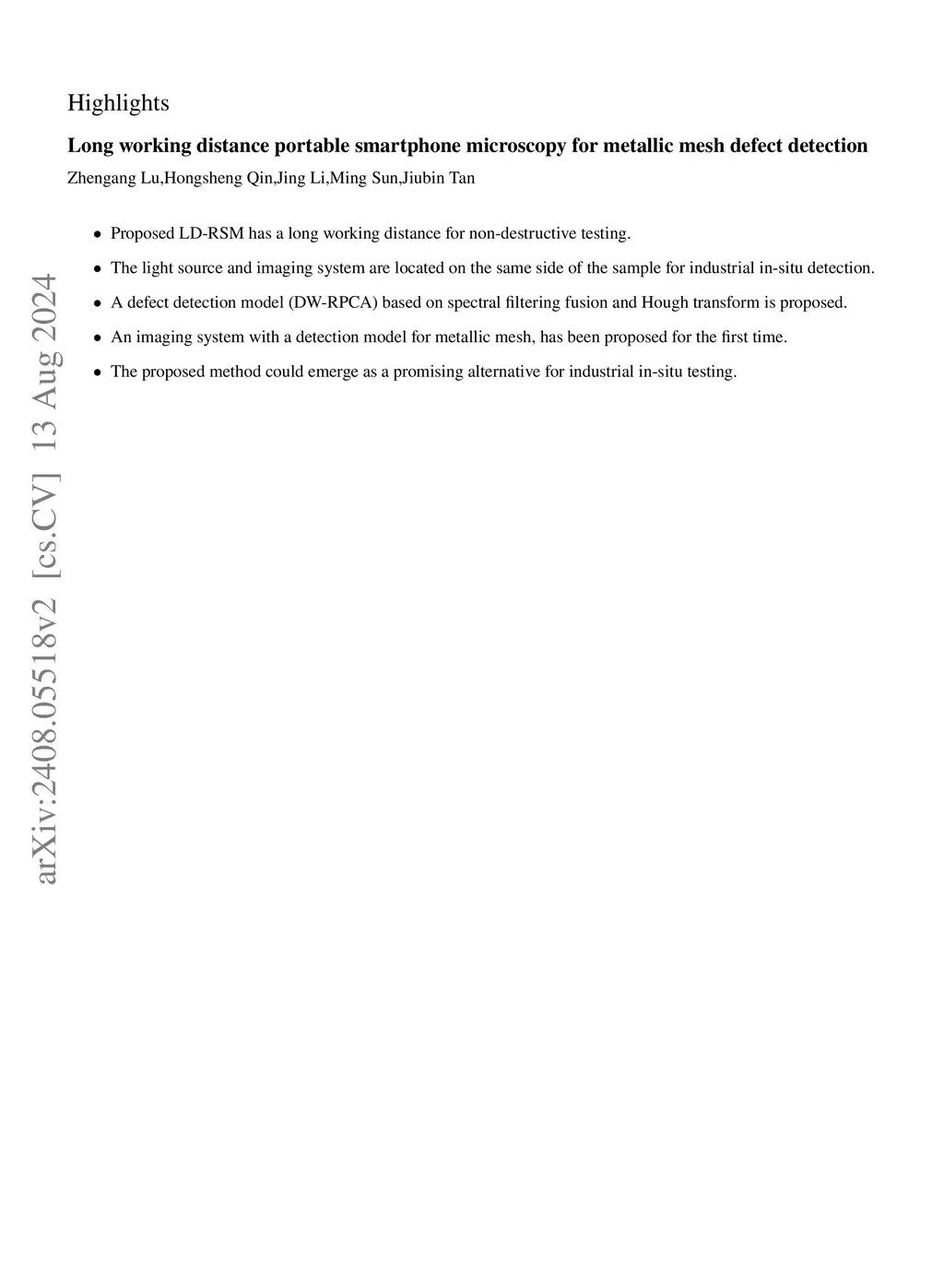 Long working distance portable smartphone microscopy for metallic mesh