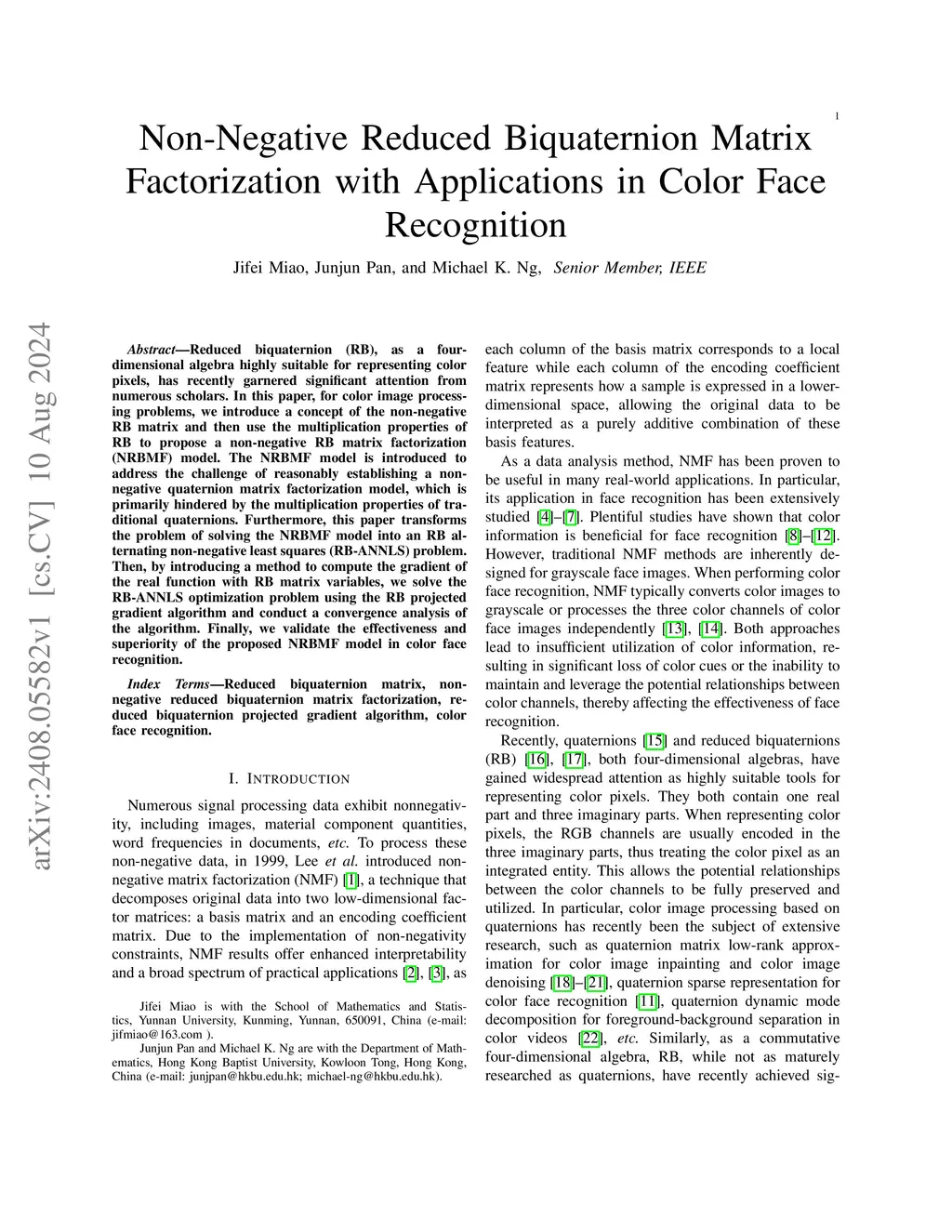 Non-Negative Reduced Biquaternion Matrix Factorization with Applications in Color Face Recognition