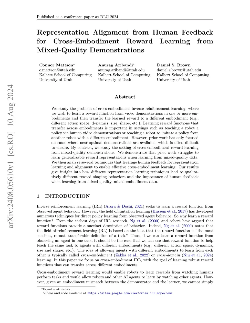 We study the problem of cross-embodiment inverse reinforcement learning, where we wish to learn a reward function from video demonstrations in one or more embodiments and then transfer the learned reward to a different embodiment (e.g., different action space, dynamics, size, shape, etc.). Learning reward functions that transfer across embodiments is important in settings such as teaching a robot a policy via human video demonstrations or teaching a robot to imitate a policy from another robot with a different embodiment. However, prior work has only focused on cases where near-optimal demonstrations are available, which is often difficult to ensure. By contrast, we study the setting of cross-embodiment reward learning from mixed-quality demonstrations. We demonstrate that prior work struggles to learn generalizable reward representations when learning from mixed-quality data. We then analyze several techniques that leverage human feedback for representation learning and alignment to enable effective cross-embodiment learning. Our results give insight into how different representation learning techniques lead to qualitatively different reward shaping behaviors and the importance of human feedback when learning from mixed-quality, mixed-embodiment data.