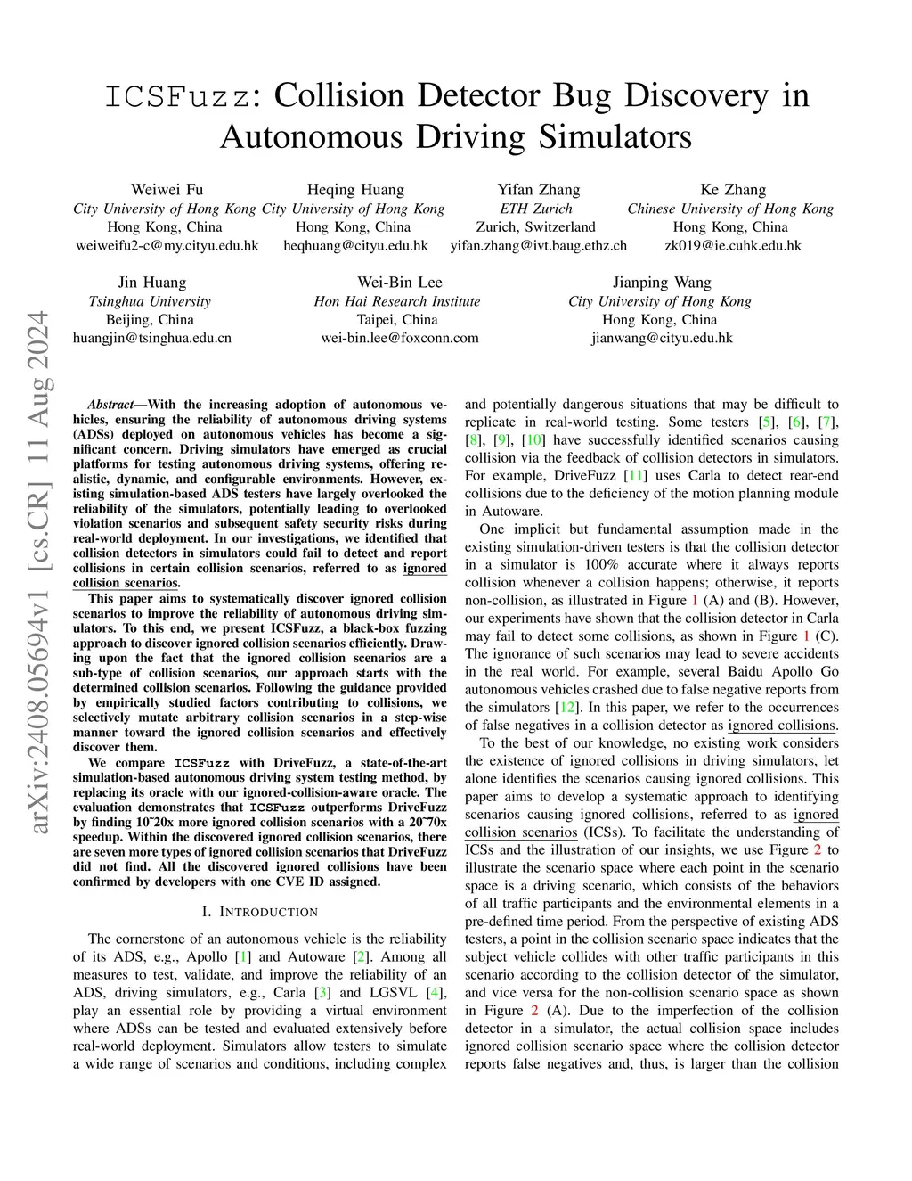 ICSFuzz: Collision Detector Bug Discovery in Autonomous Driving
