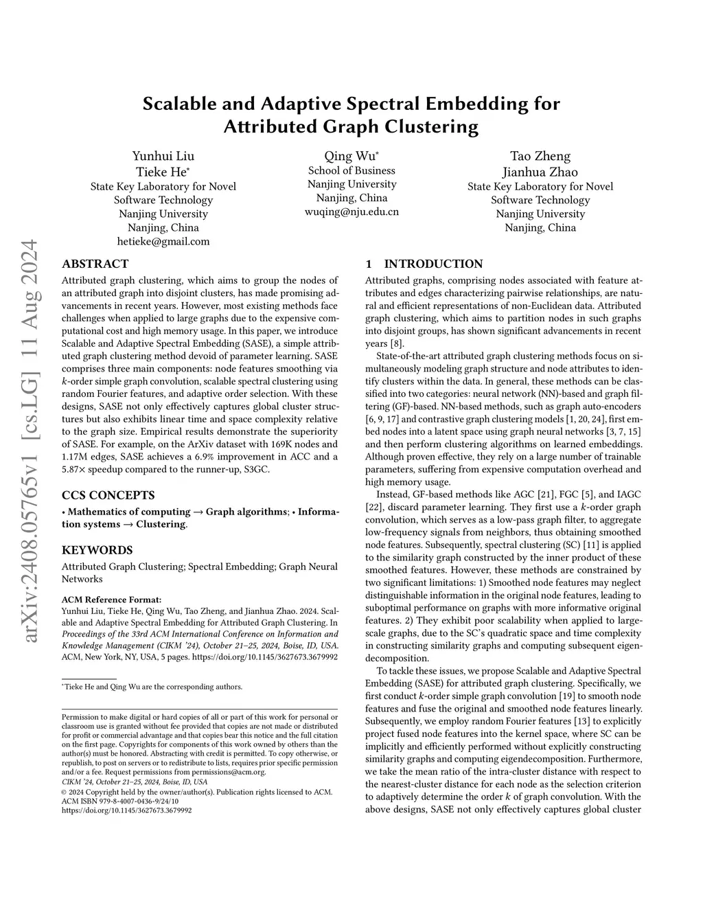 Scalable and Adaptive Spectral Embedding for Attributed Graph Clustering
