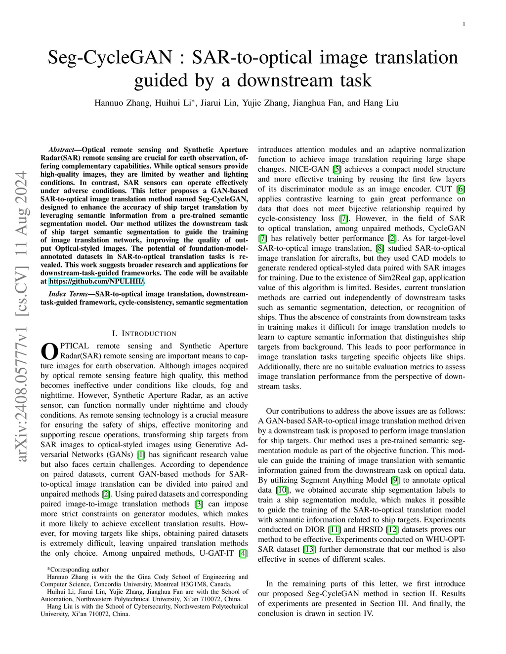Seg-CycleGAN : SAR-to-optical image translation guided by a downstream