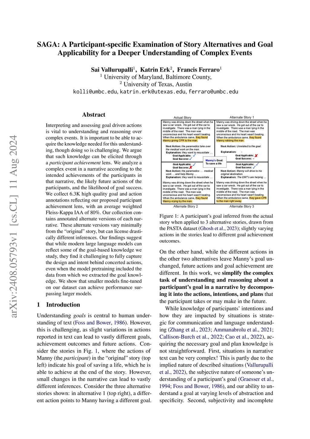 SAGA: A Participant-specific Examination of Story Alternatives and Goal