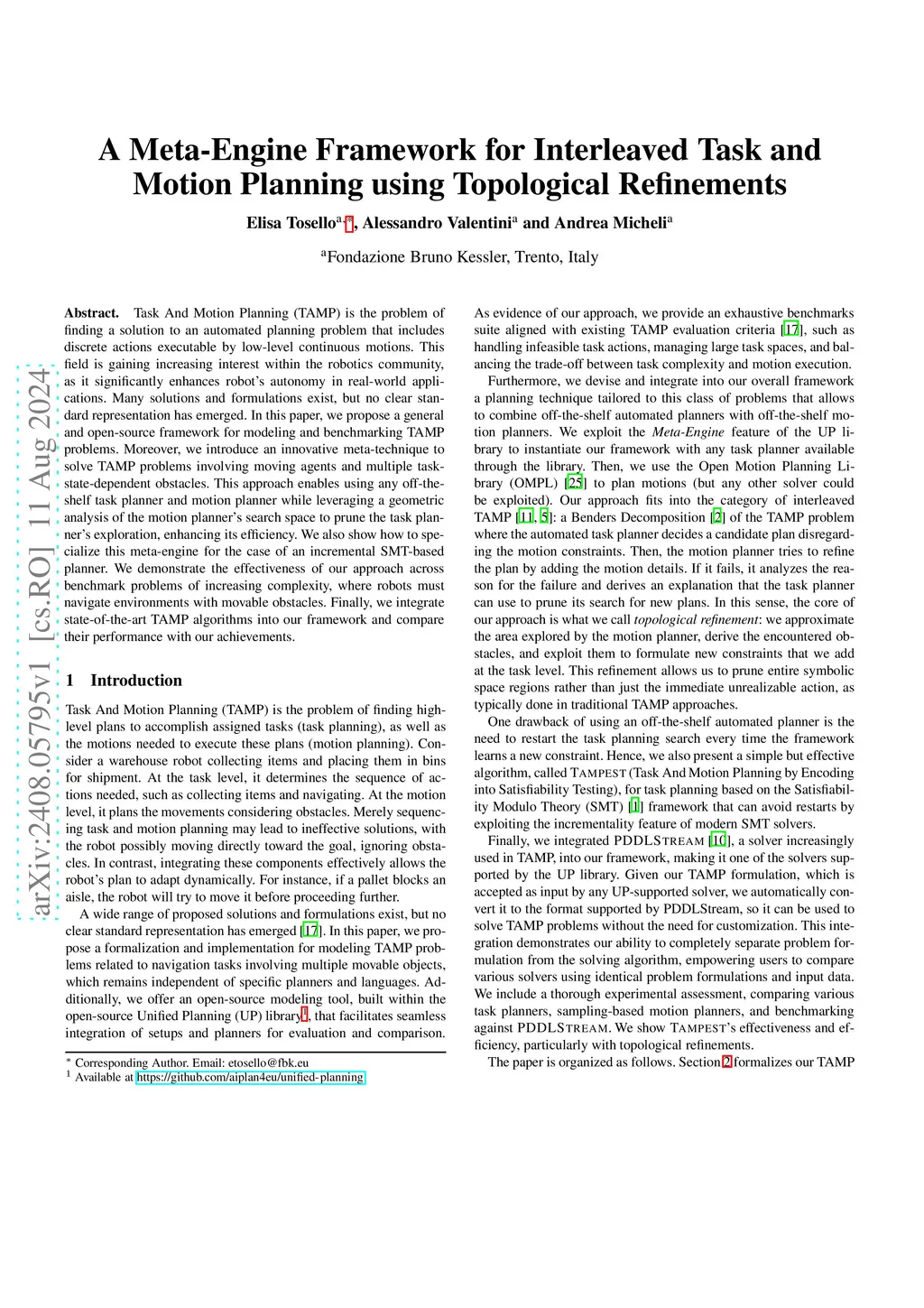 A Meta-Engine Framework for Interleaved Task and Motion Planning using