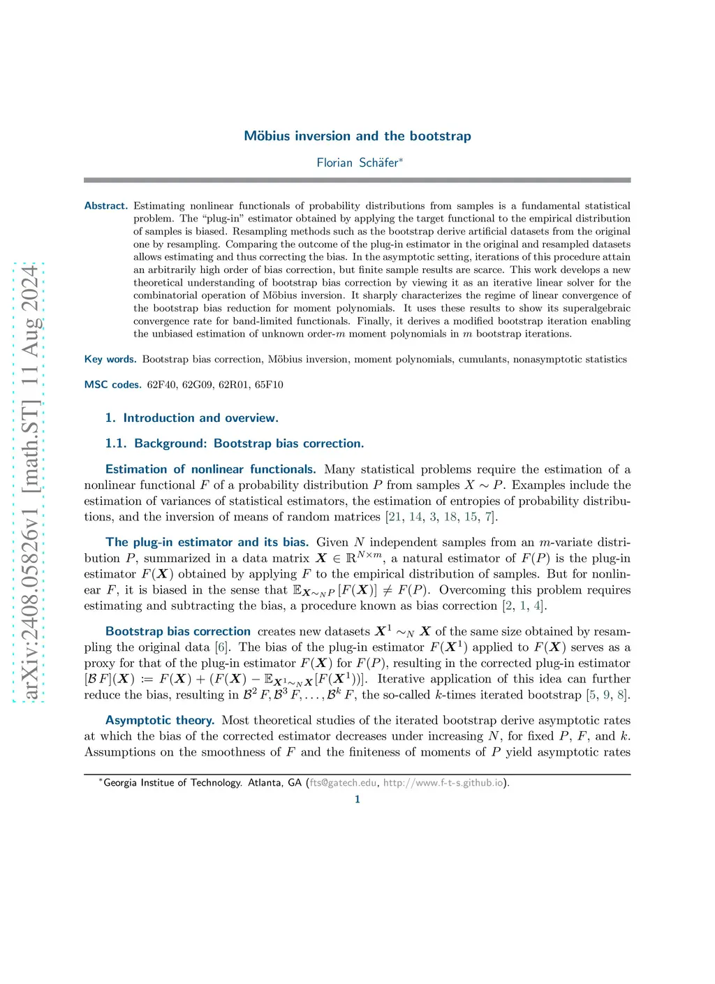 Estimating nonlinear functionals of probability distributions from samples is a fundamental statistical problem. The "plug-in" estimator obtained by applying the target functional to the empirical distribution of samples is biased. Resampling methods such as the bootstrap derive artificial datasets from the original one by resampling. Comparing the outcome of the plug-in estimator in the original and resampled datasets allows estimating and thus correcting the bias. In the asymptotic setting, iterations of this procedure attain an arbitrarily high order of bias correction, but finite sample results are scarce. This work develops a new theoretical understanding of bootstrap bias correction by viewing it as an iterative linear solver for the combinatorial operation of M\"obius inversion. It sharply characterizes the regime of linear convergence of the bootstrap bias reduction for moment polynomials. It uses these results to show its superalgebraic convergence rate for band-limited functionals. Finally, it derives a modified bootstrap iteration enabling the unbiased estimation of unknown order- moment polynomials in bootstrap iterations.