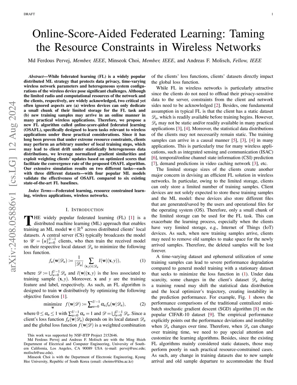 Online-Score-Aided Federated Learning: Taming the Resource Constraints in Wireless Networks