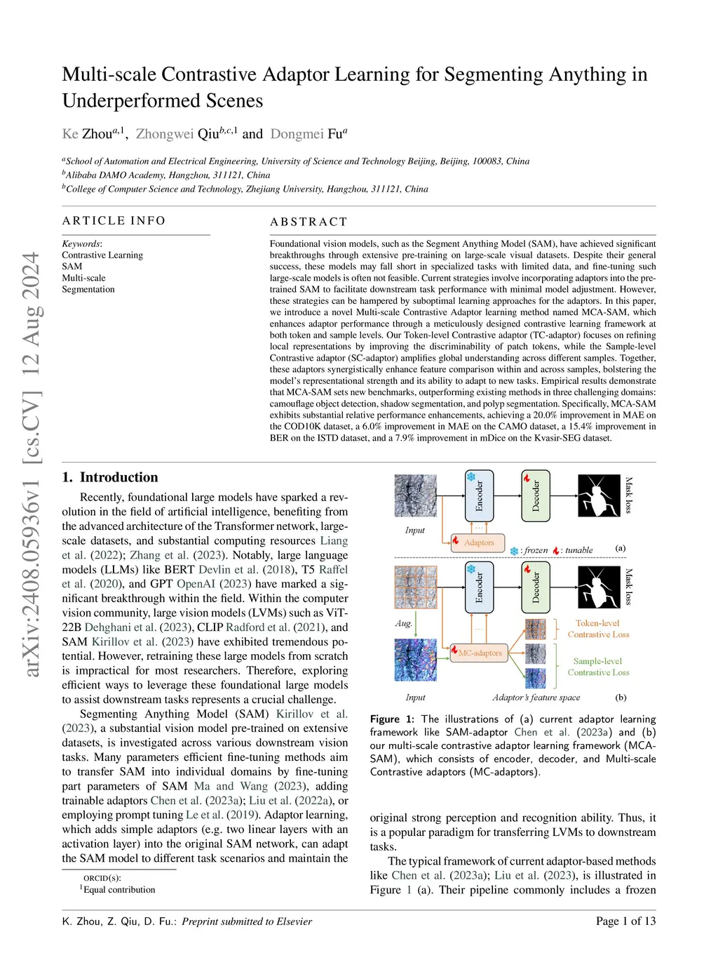 Multi-scale Contrastive Adaptor Learning for Segmenting Anything in