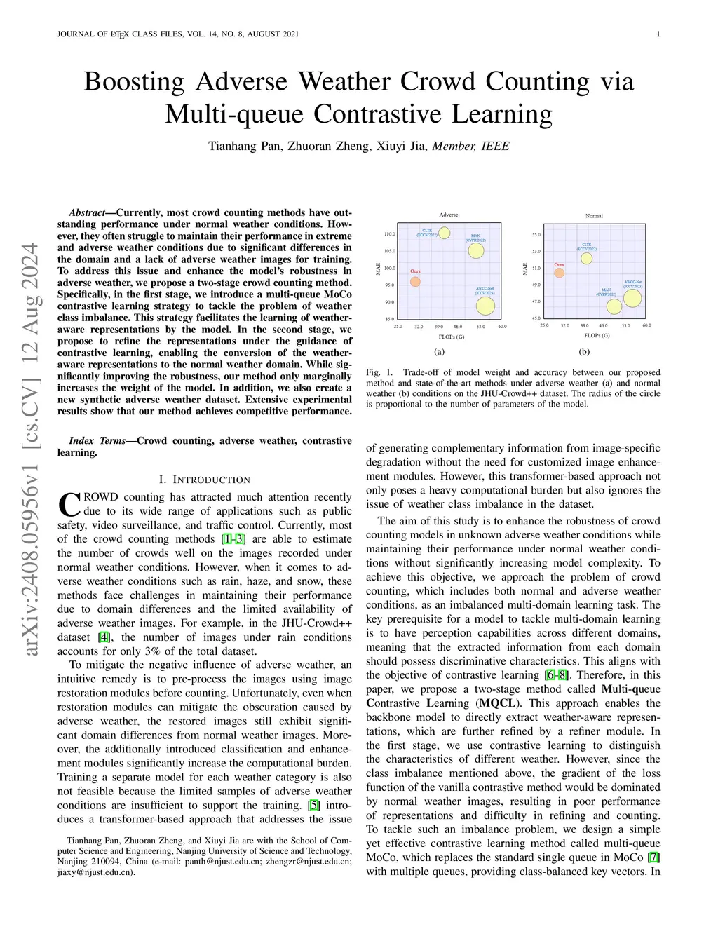 Boosting Adverse Weather Crowd Counting via Multi-queue Contrastive Learning