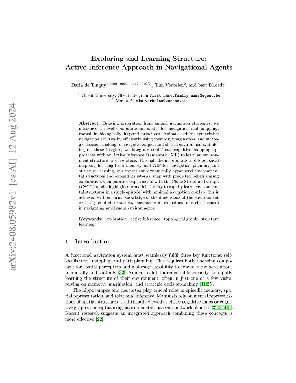 Exploring and Learning Structure: Active Inference Approach in Navigational Agents