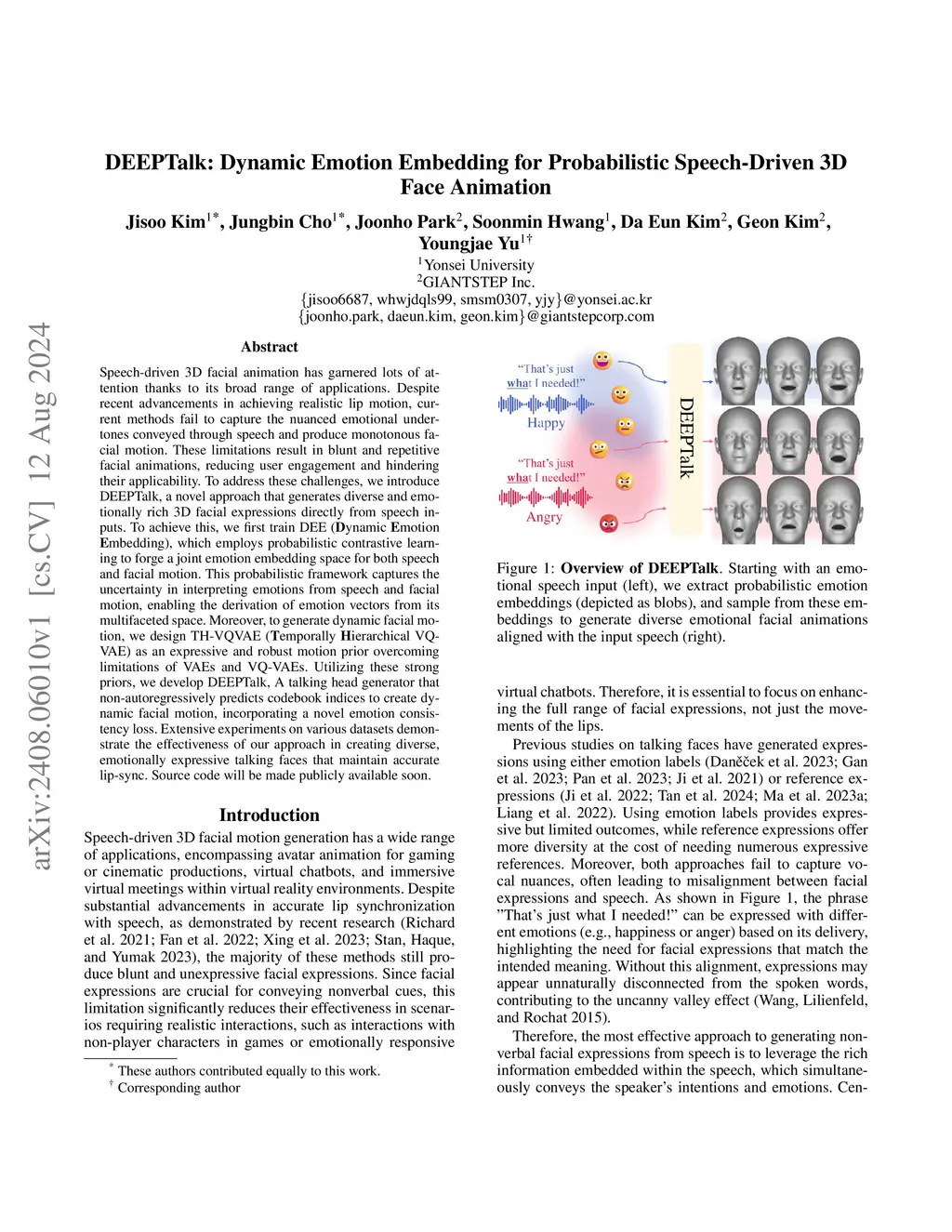 DEEPTalk: Dynamic Emotion Embedding for Probabilistic Speech-Driven 3D Face Animation