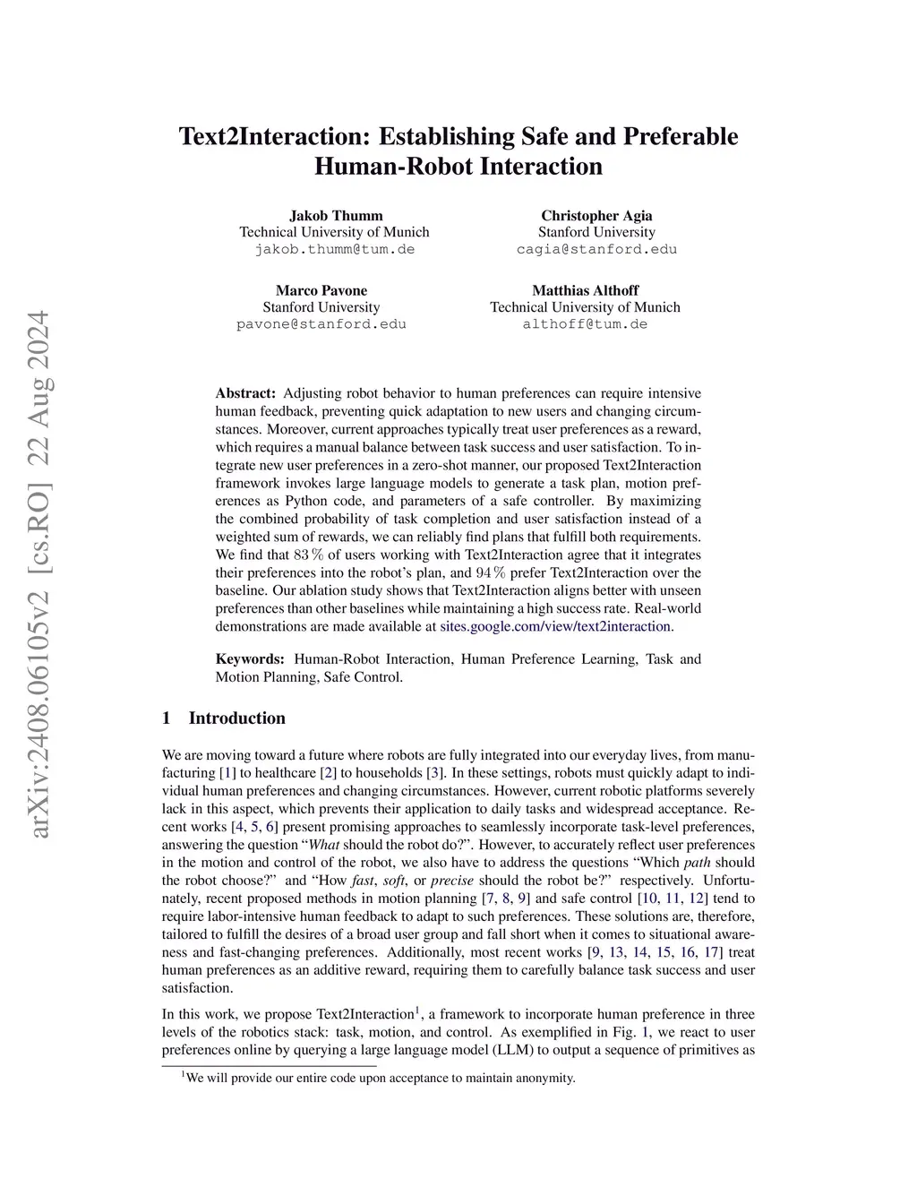 Text2Interaction: Establishing Safe and Preferable Human-Robot