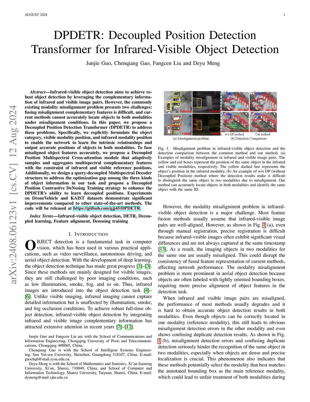DPDETR: Decoupled Position Detection Transformer for Infrared-Visible Object Detection