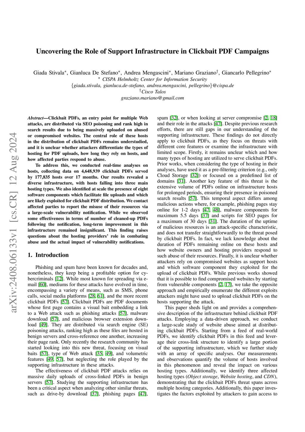 Uncovering the Role of Support Infrastructure in Clickbait PDF Campaigns