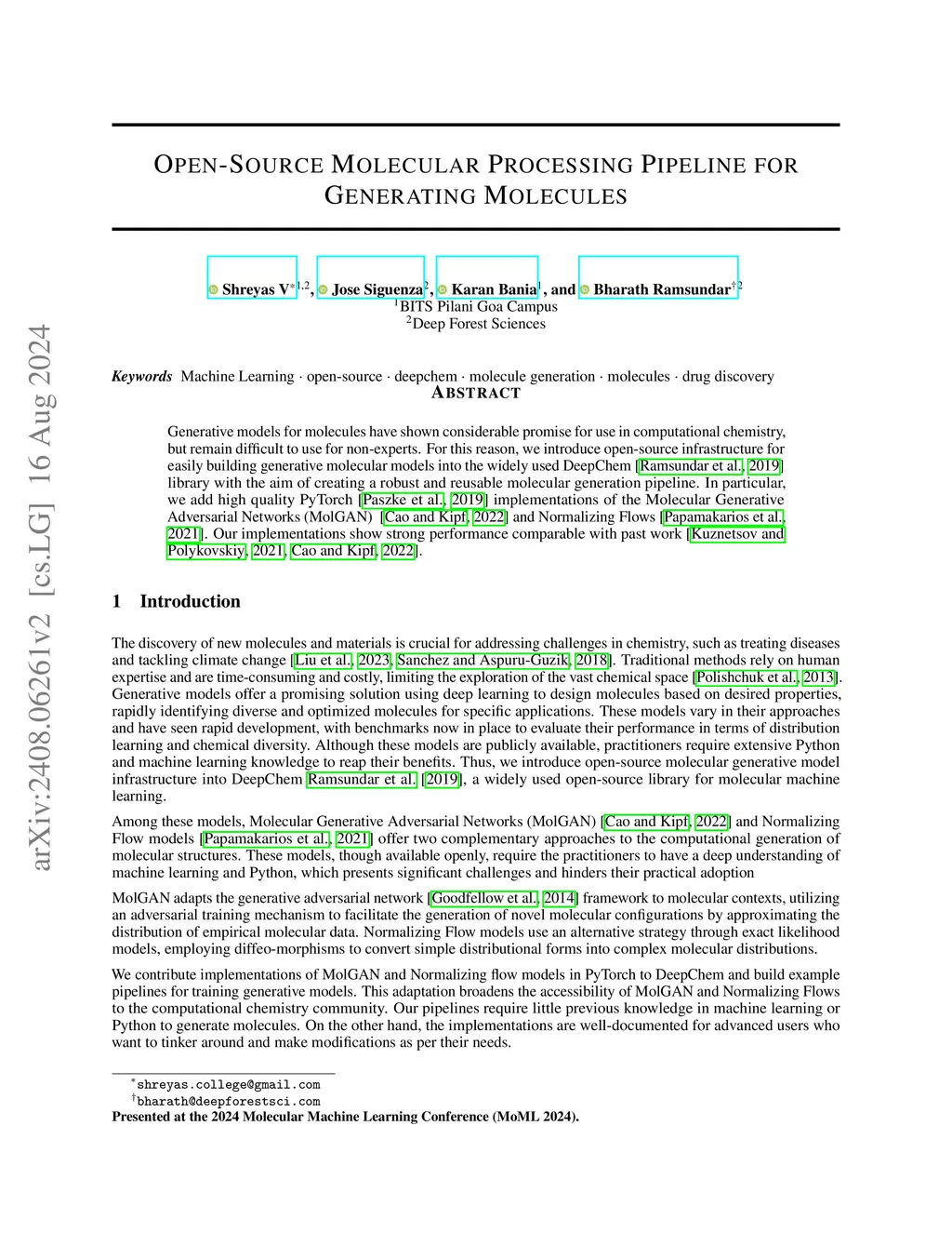Open-Source Molecular Processing Pipeline for Generating Molecules