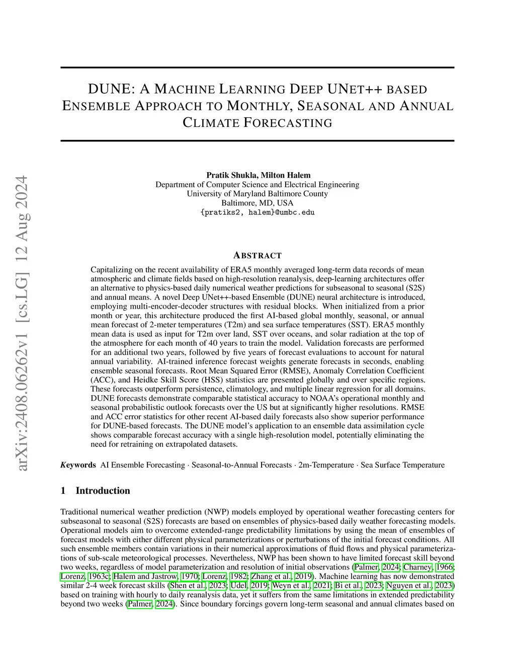 DUNE: A Machine Learning Deep UNet++ based Ensemble Approach to Monthly,