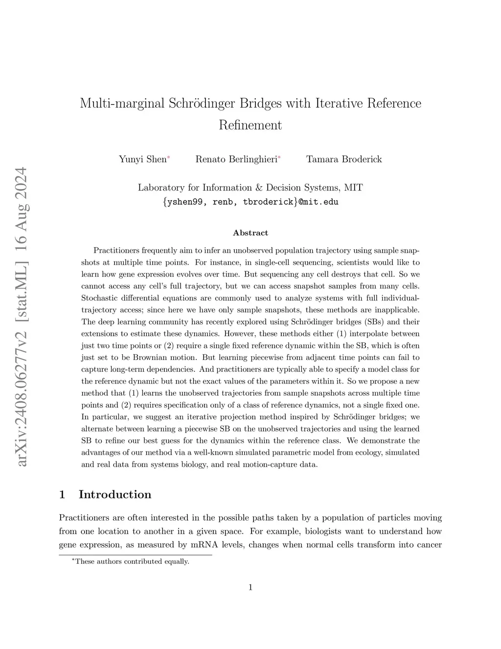 Practitioners often aim to infer an unobserved population trajectory using sample snapshots at multiple time points. E.g., given single-cell sequencing data, scientists would like to learn how gene expression changes over a cell's life cycle. But sequencing any cell destroys that cell. So we can access data for any particular cell only at a single time point, but we have data across many cells. The deep learning community has recently explored using Schrödinger bridges (SBs) and their extensions in similar settings. However, existing methods either (1) interpolate between just two time points or (2) require a single fixed reference dynamic (often set to Brownian motion within SBs). But learning piecewise from adjacent time points can fail to capture long-term dependencies. And practitioners are typically able to specify a model family for the reference dynamic but not the exact values of the parameters within it. So we propose a new method that (1) learns the unobserved trajectories from sample snapshots across multiple time points and (2) requires specification only of a family of reference dynamics, not a single fixed one. We demonstrate the advantages of our method on simulated and real data.