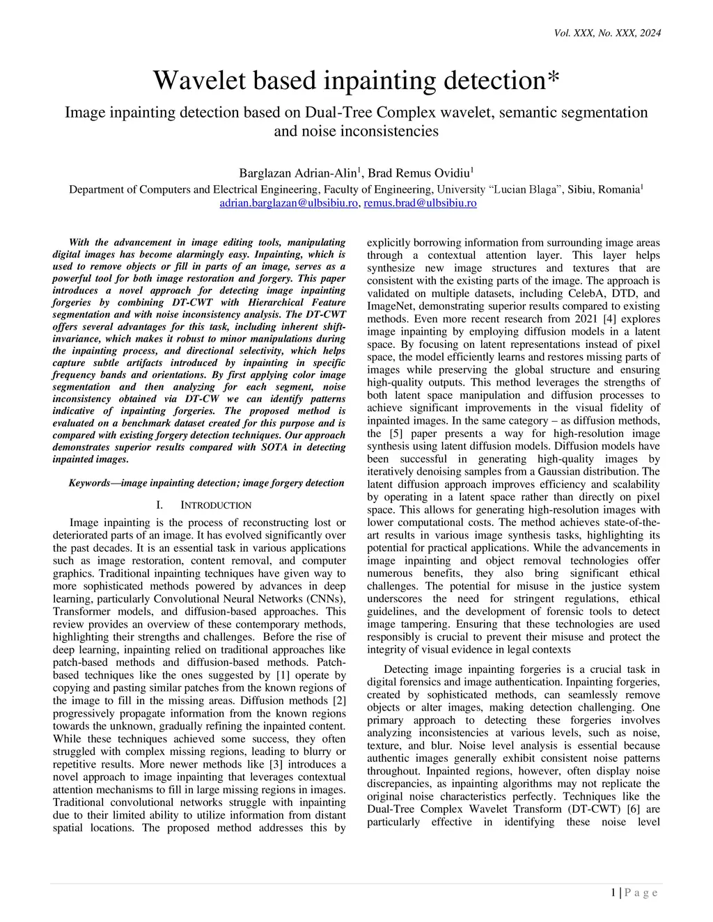 With the advancement in image editing tools, manipulating digital images has become alarmingly easy. Inpainting, which is used to remove objects or fill in parts of an image, serves as a powerful tool for both image restoration and forgery. This paper introduces a novel approach for detecting image inpainting forgeries by combining DT-CWT with Hierarchical Feature segmentation and with noise inconsistency analysis. The DT-CWT offers several advantages for this task, including inherent shift-invariance, which makes it robust to minor manipulations during the inpainting process, and directional selectivity, which helps capture subtle artifacts introduced by inpainting in specific frequency bands and orientations. By first applying color image segmentation and then analyzing for each segment, noise inconsistency obtained via DT-CW we can identify patterns indicative of inpainting forgeries. The proposed method is evaluated on a benchmark dataset created for this purpose and is compared with existing forgery detection techniques. Our approach demonstrates superior results compared with SOTA in detecting inpainted images.