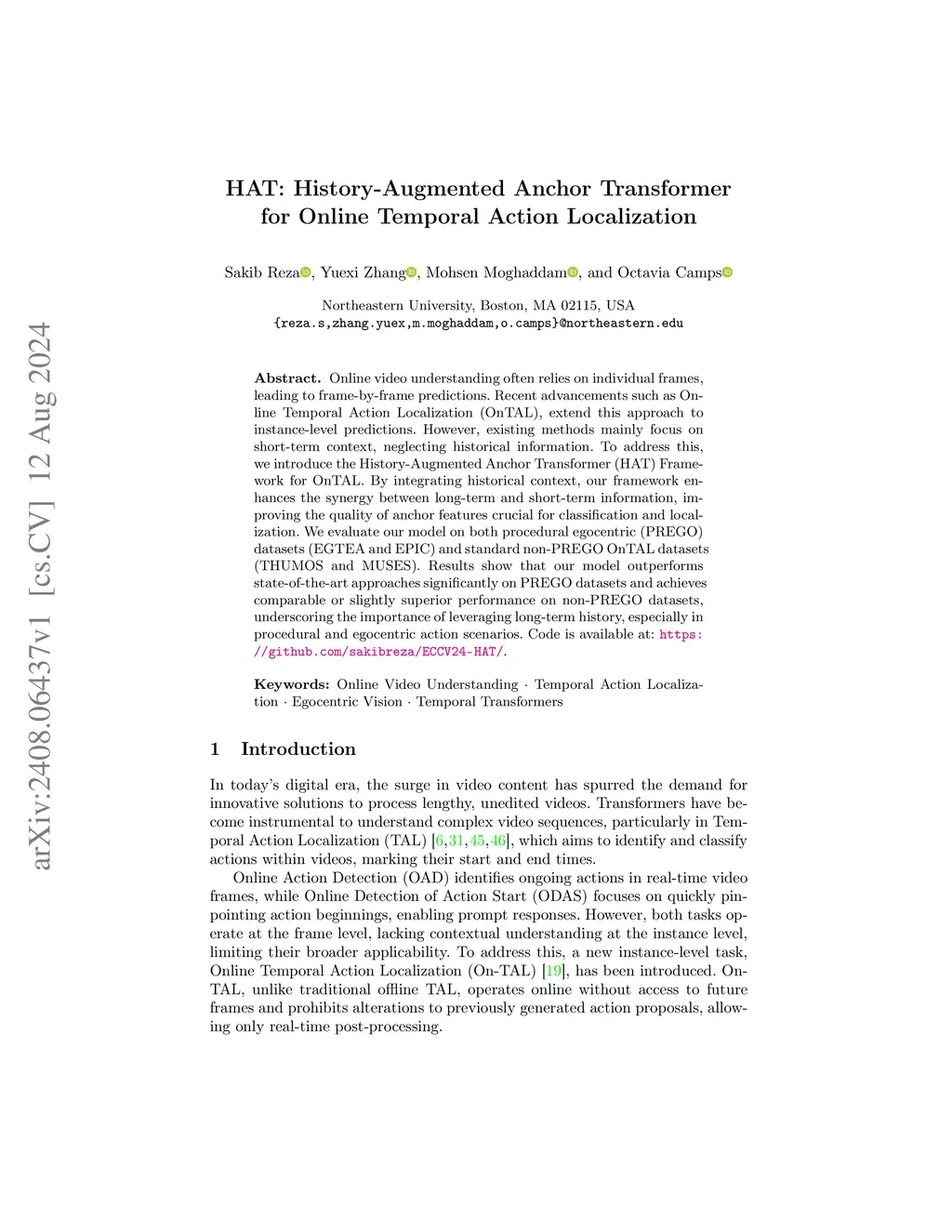 HAT: History-Augmented Anchor Transformer for Online Temporal Action