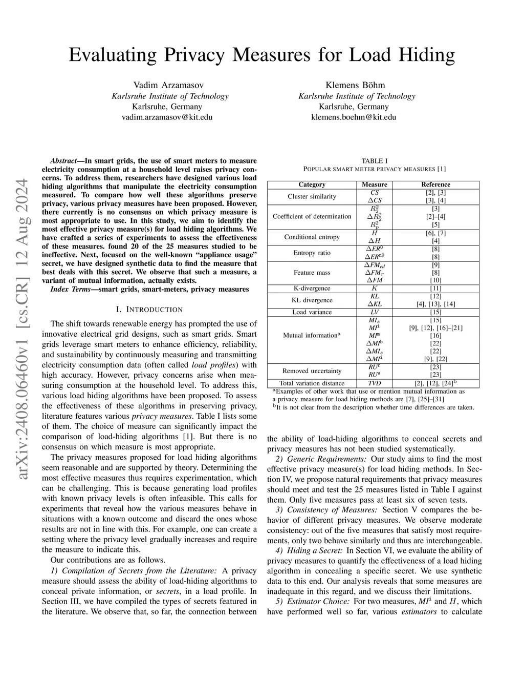 In smart grids, the use of smart meters to measure electricity consumption at a household level raises privacy concerns. To address them, researchers have designed various load hiding algorithms that manipulate the electricity consumption measured. To compare how well these algorithms preserve privacy, various privacy measures have been proposed. However, there currently is no consensus on which privacy measure is most appropriate to use. In this study, we aim to identify the most effective privacy measure(s) for load hiding algorithms. We have crafted a series of experiments to assess the effectiveness of these measures. found 20 of the 25 measures studied to be ineffective. Next, focused on the well-known "appliance usage" secret, we have designed synthetic data to find the measure that best deals with this secret. We observe that such a measure, a variant of mutual information, actually exists.