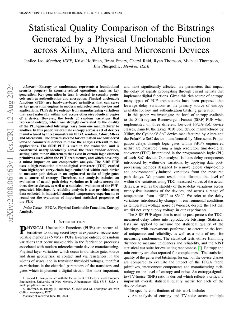 Unclonable Function across Xilinx, Altera and Microsemi Devices