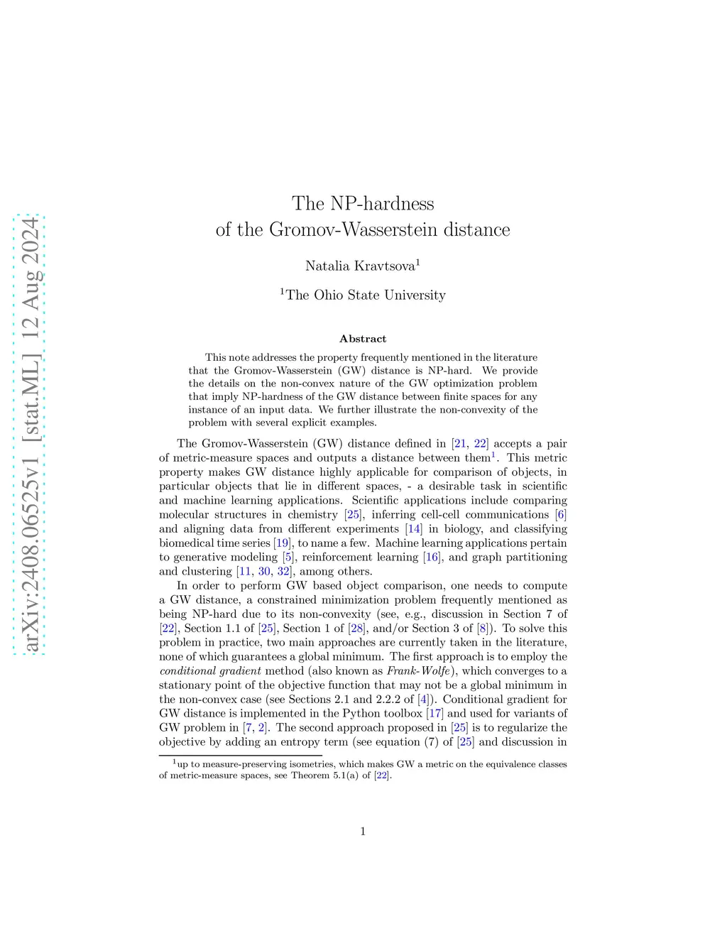 This note addresses computational difficulty of the Gromov-Wasserstein distance frequently mentioned in the literature. We provide details on the structure of the Gromov-Wasserstein distance optimization problem that show its non-convex quadratic nature for any instance of an input data. We further illustrate the non-convexity of the problem with several explicit examples.